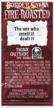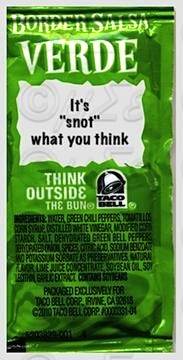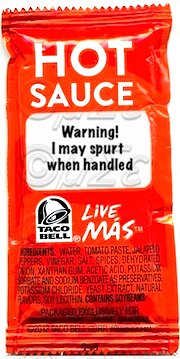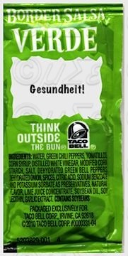 Legal stuff: Taco Bell, “Think Ouside the Bun”, the Taco Bell Logo, and sauce packet designs are Registered Trademarks (®) of, and the sauce recipes Copyright (©) of, the Taco Bell Corporation, whose rights are acknowledged by the Author. Oh, and if you’re Taco Bell and you like these I’d love to discuss a royalty for “Derivative Work”