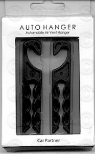 Here’s the product, basically two little “legs” which fit into your car vent to hang small items from, or act as tiny feet for your phone or tablet when used as a pair:
