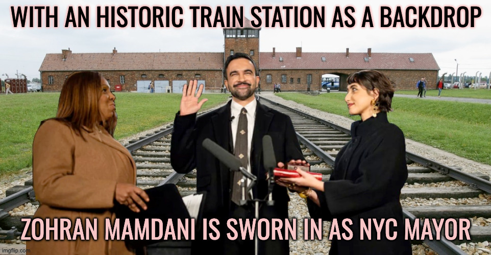 (Note many have claimed Mamdani has taken a middle-of-the-road approach regarding Israel, but it’s yet to be seen if that was just a Trojan Horse simply to get elected. And, most importantly, Mamdani would never engage in the atrocities of the train station depicted in the meme.)