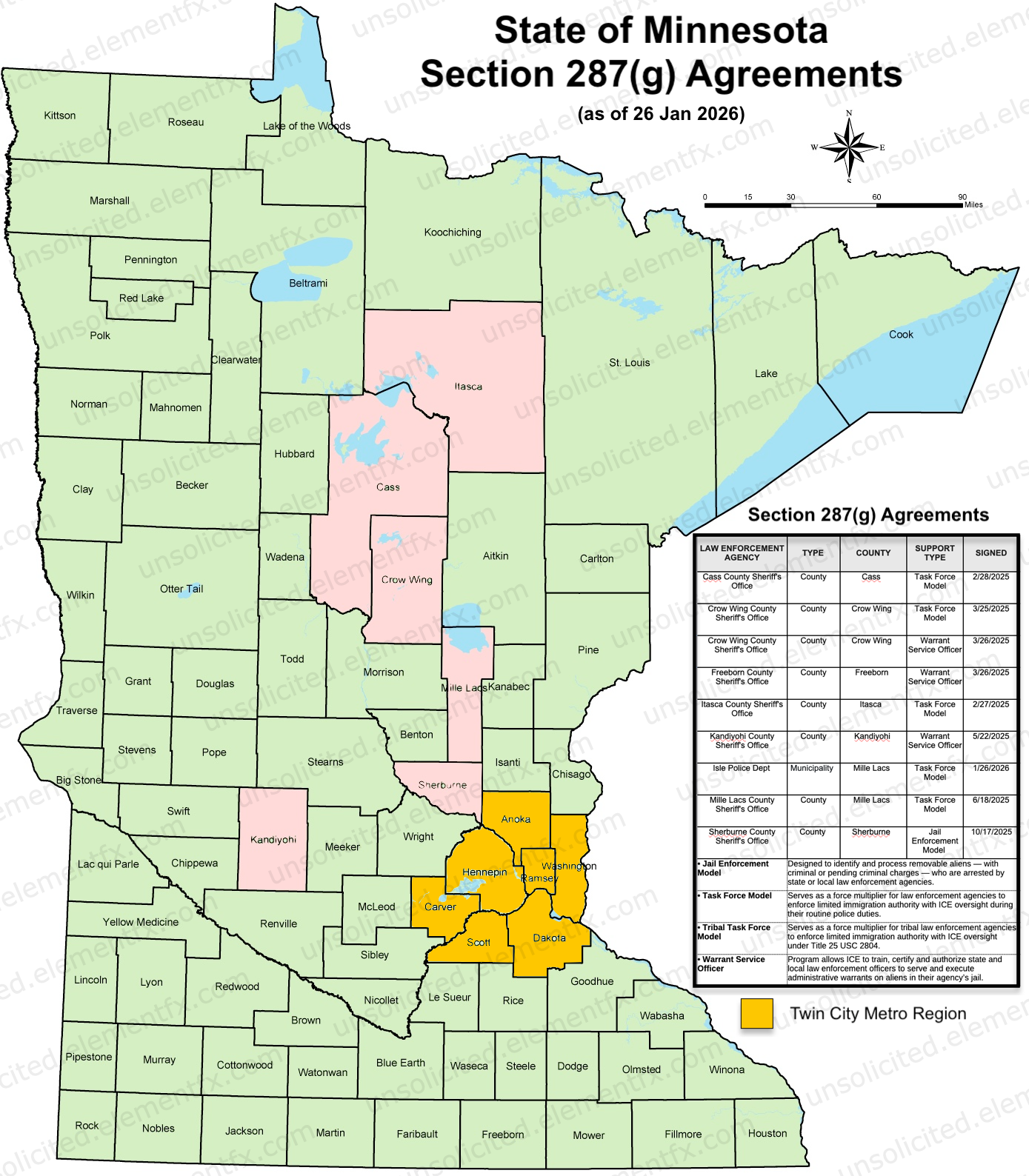 When it comes to Minnesota’s 87 counties only 6 have one or more Federal Section 287(g) Agreements in place, and none of those six counties include the Twin Cities (Minneapolis & St. Paul) or its’ Metropolitan Region:
