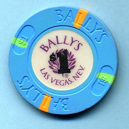 $1.00 Bally's Hotel and Casino, Las Vegas NV House mold Paulson chip with alternating orange and green inserts at the cardinal points. Inlay shows olive leaf cluster with "Bally's". Front has slight scuff line between the "A" and "L", and also at top of the "1", otherwise excellent. Slightly Used (SU) condition. Asking $5.00 --