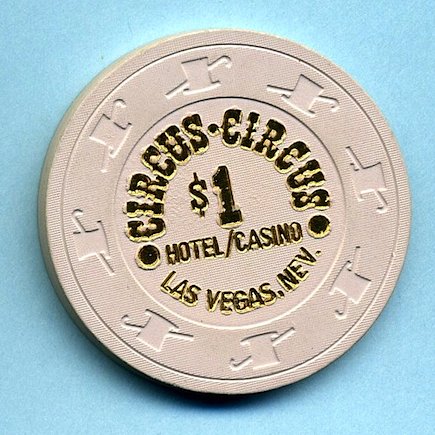 $1.00 Circus Circus, Las Vegas NV Insert of cream colored Paulson "Short Cane" mold chip has "Circus • Circus $1 Hotel/Casino Las Vegas Nev." hot stamped in gold colored metallic ink on both sides. Slightly Used (SU) condition. Asking $12.00 --
